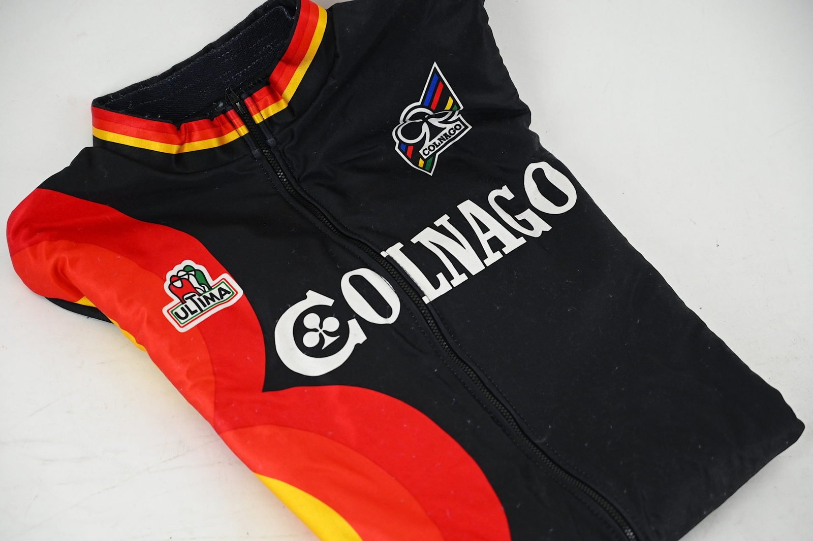 Colnago winter cycling jacket from the early 90’s in the Belgian road champion colors, made in Italy by Ultima.