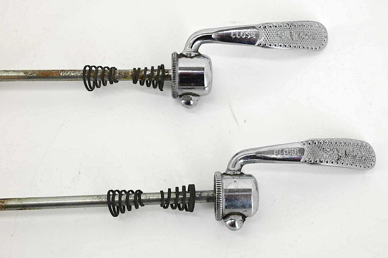 Suntour Superbe Pro or Cyclone quick-releases for your classic set of hubs, made in Japan.