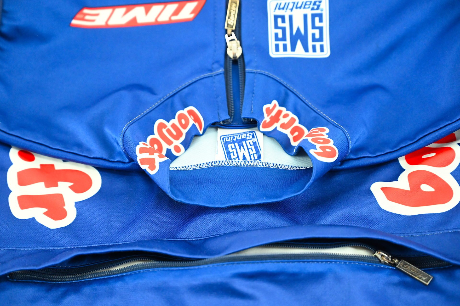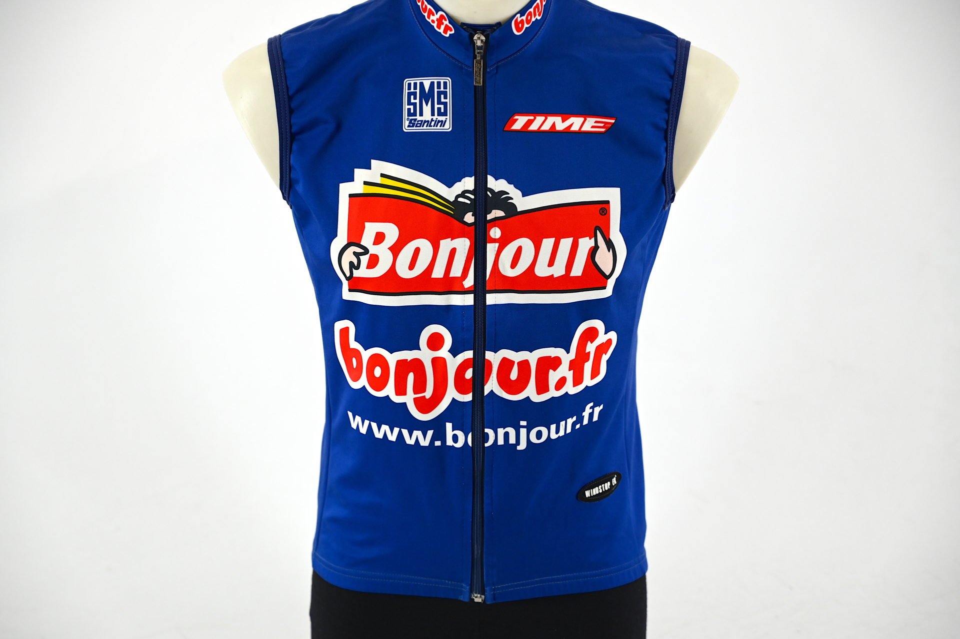 Official Pro cycling Team Bonjour Time vest for those colder days, made in Italy by Santini.